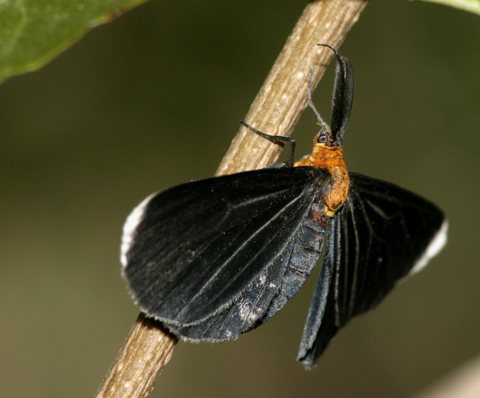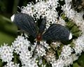 White-tipped Black (Melanchroia chephise) a diurnal moth. South Austin, Texas, November 9, 2006